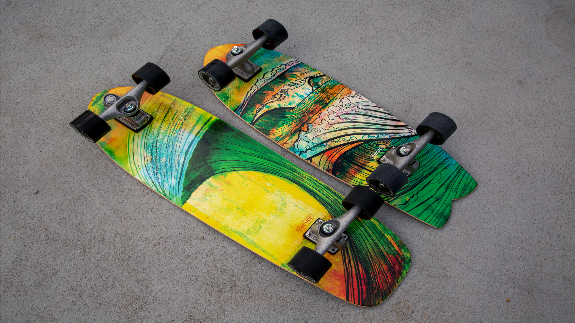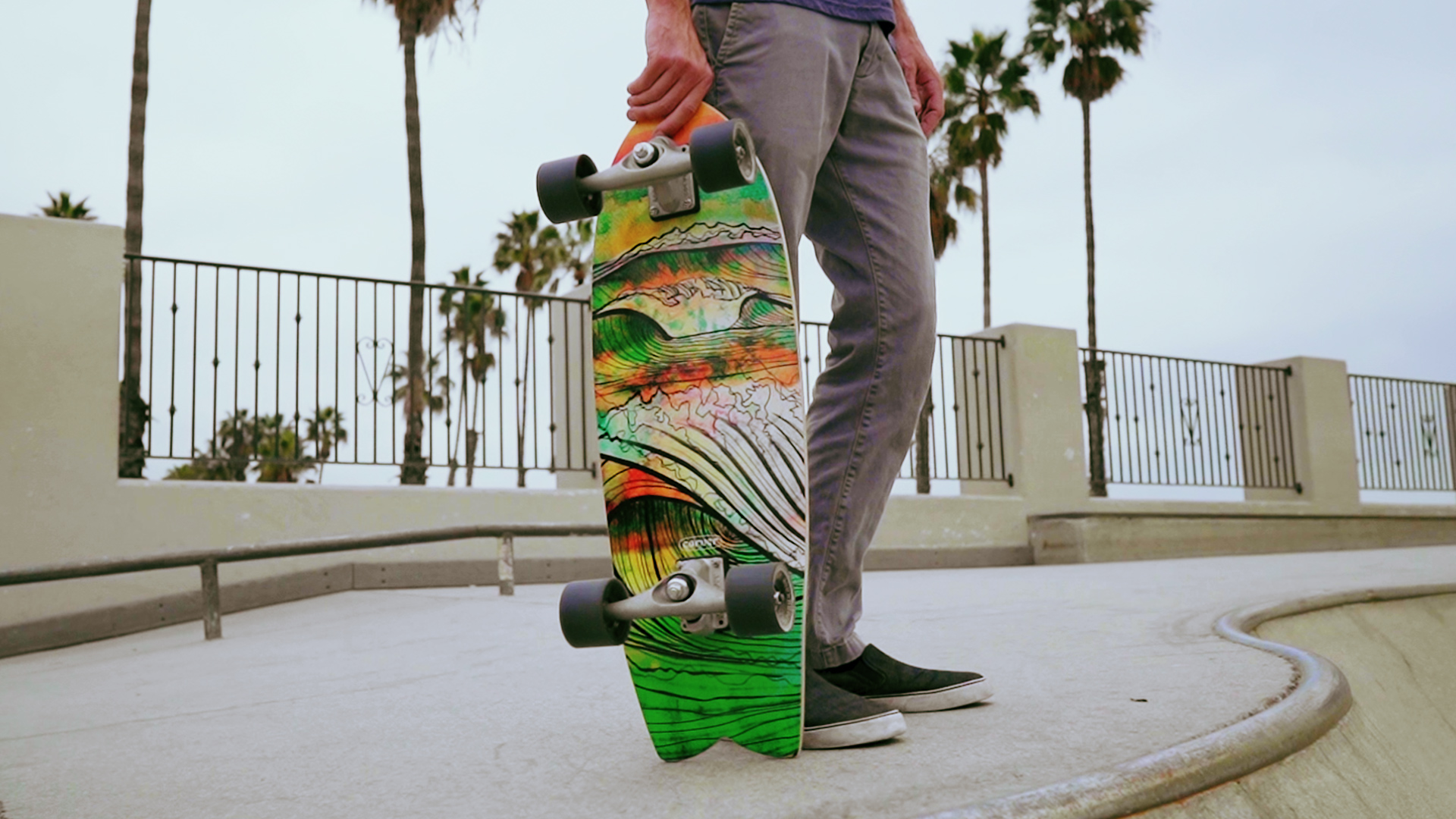 중간 크기의 복고풍 템플릿은 안정적인 조각과 더 넓은 자세를 위한 충분한 플랫폼을 제공하며 안정감있는 라이딩에 제격입니다. Ryan Kleiner의 파도형태의 작품이 특징입니다.