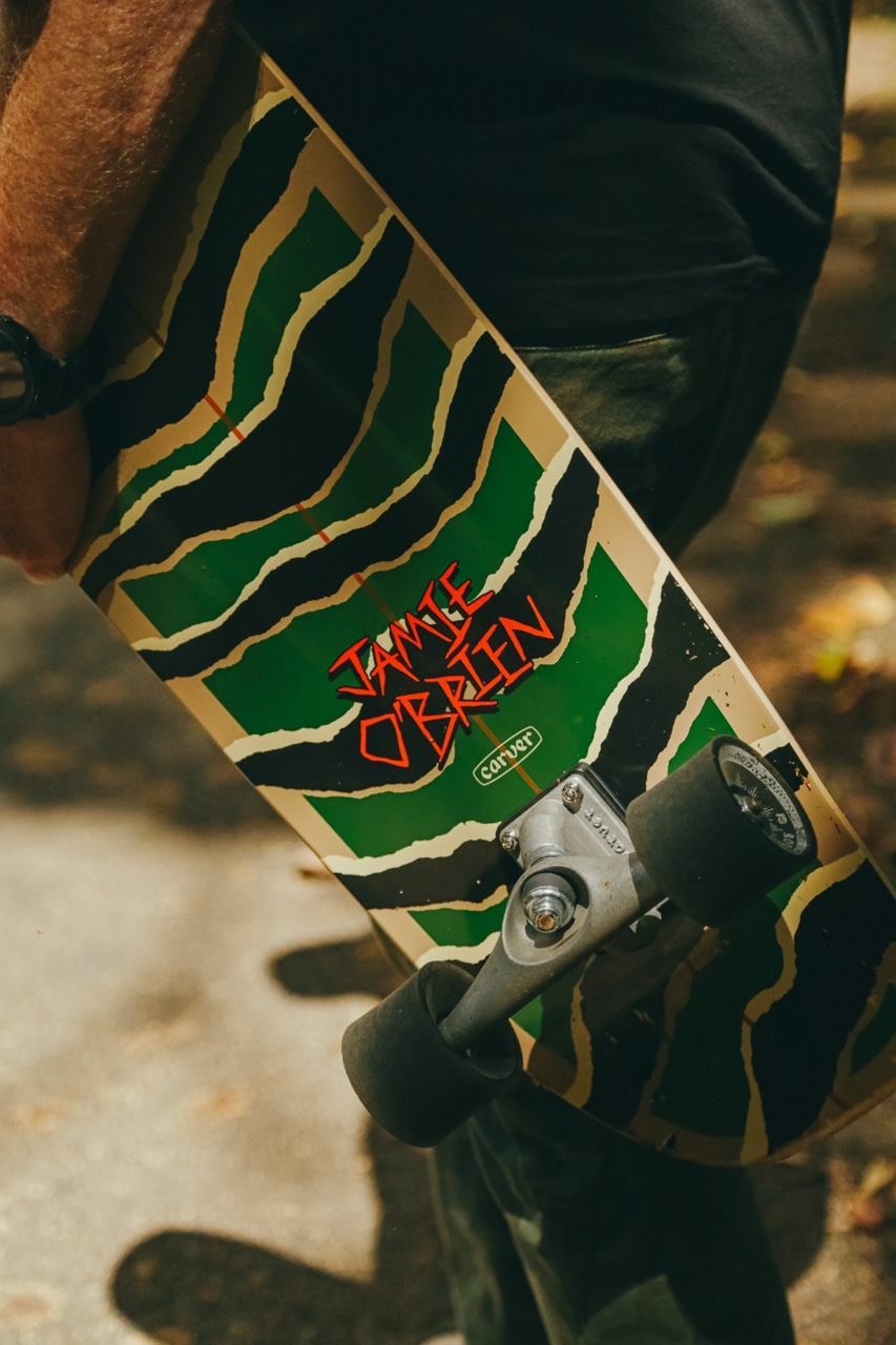 우리가 Jamie O'Brien를 만나러 갔을 때, 그의 차고의 문옆에서 Carver를 쉽게 찾을 수 있었습니다.